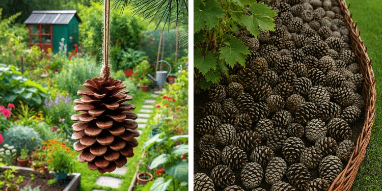 Pendurar pinheiros ao redor do seu jardim não é apenas benéfico – é bonito. Eles adicionam um charme rústico e sazonal que se mistura perfeitamente com as cores do outono, enquanto ainda servem a um propósito prático.