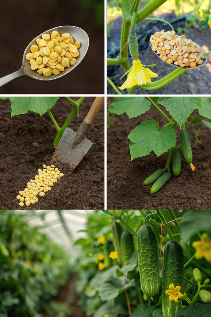 Efeito Duradouro – Como os nutrientes das ervilhas são liberados gradualmente à medida que se decompõem, os pepinos recebem um fornecimento constante de nutrientes ao longo do tempo.