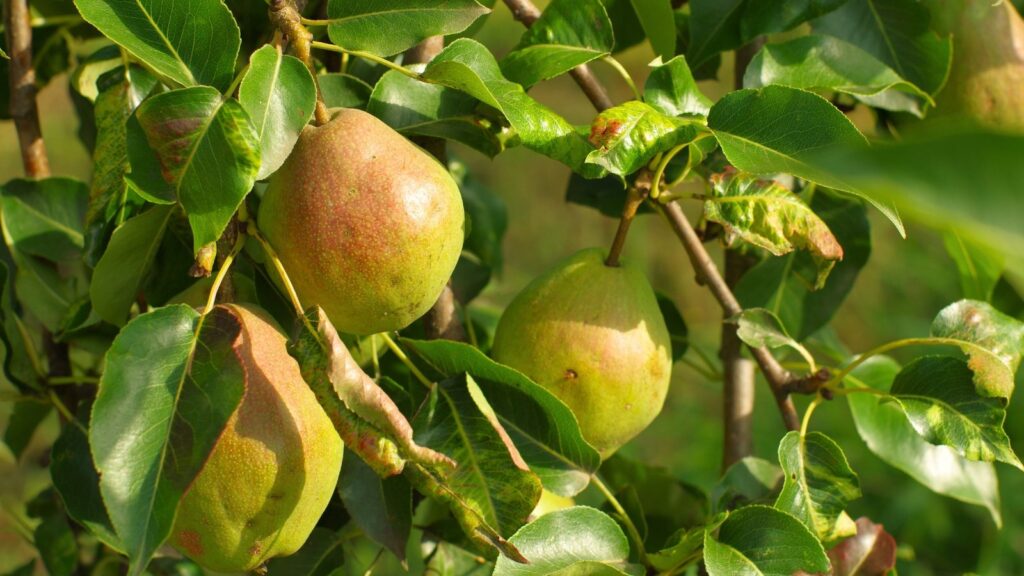 Pereiras combinam bem com outras árvores frutíferas como macieiras e figos resistentes que são adequados para o mesmo clima.